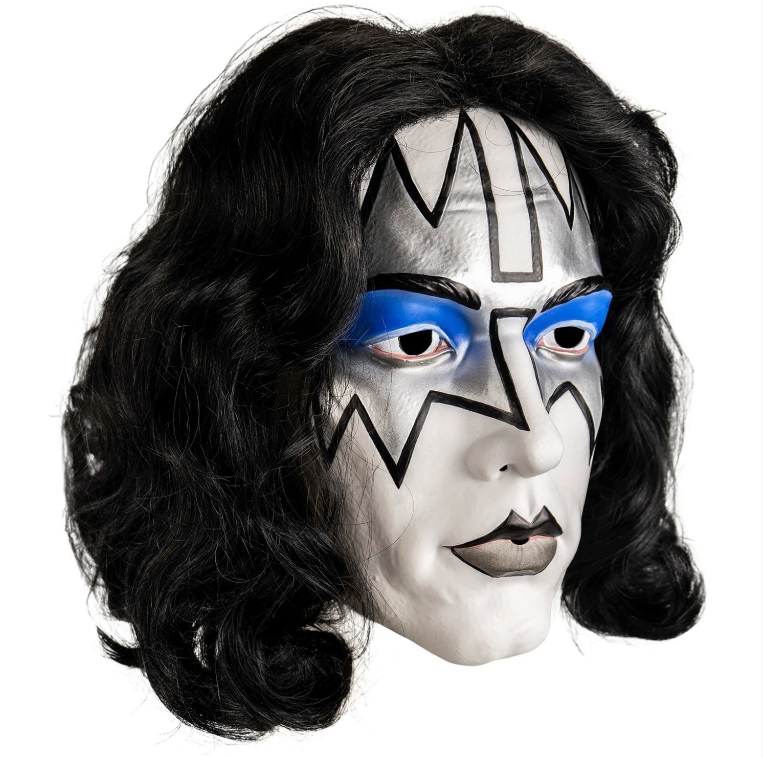 officially licensed KISS - The Spaceman Deluxe Injection Mask. This deluxe face mask is made of rigid plastic sculpted and painted to look exactly like The Spaceman on stage! The mask has an elastic strap to comfortably hold it in place with a styled wig attached to the mask for full coverage and easy wear.