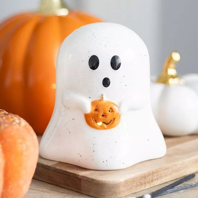 Ghost Shaped Tealight Candle Holder with Pumpkin