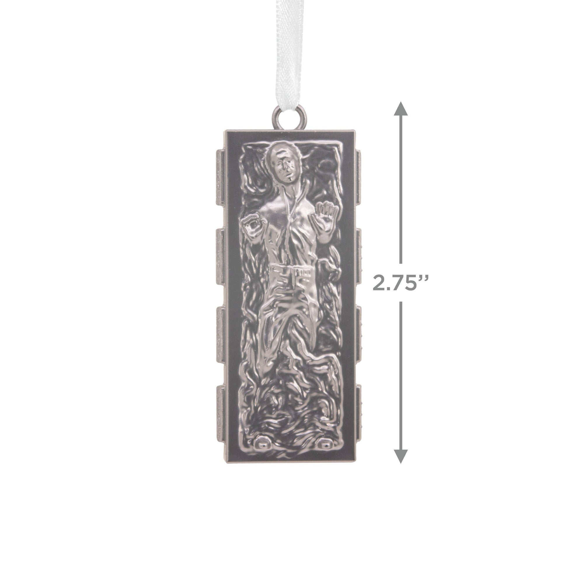 No matter the occasion, from making Christmas extra exciting to an intergalactic birthday, win their heart (and protect your love with Carbonite) with this Star Wars™, Han Solo frozen in Carbonite Premium Metal Ornament.